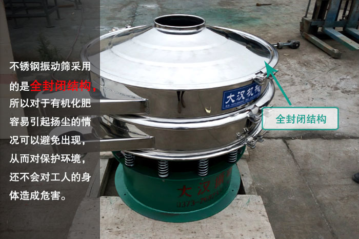 不銹鋼振動篩采用的是全封閉結(jié)構(gòu),所以對于有機化肥容易引起揚塵的情況可以避免出現(xiàn),從而對保護環(huán)境,還不會對工人的身體造成危害。