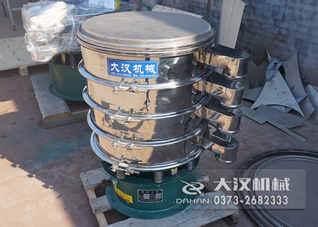 DH-600-3S型篩分機為600mm直徑三層四出口不銹鋼旋振篩,子母網(wǎng)分離式網(wǎng)架,底座為碳鋼材質(zhì)。