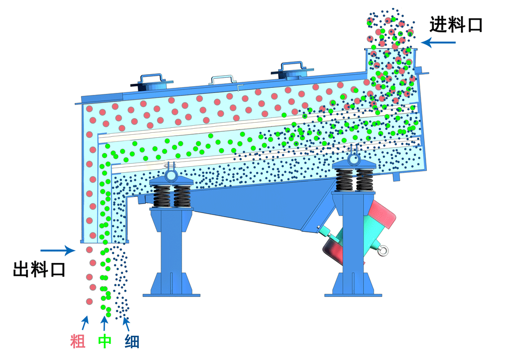 標(biāo)準(zhǔn)的振動(dòng)篩分機(jī)設(shè)備工作原理是利用振動(dòng)原理來實(shí)現(xiàn)不同物料分級(jí)或篩選,通過振動(dòng)源帶動(dòng)篩箱運(yùn)動(dòng),使物料在篩面上做定向運(yùn)動(dòng),依據(jù)顆粒大小差異透過不同孔徑的篩網(wǎng),從而完成物料的分離與提純。根據(jù)振動(dòng)篩分機(jī)設(shè)備的工作原理,制造設(shè)備的型號(hào)也不同。